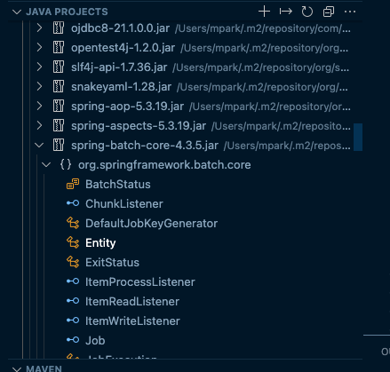 1. 수동 생성 : spring-batch-core jar 파일을 열어보면 아래쪽에 sql 문이 db별로 존재함.